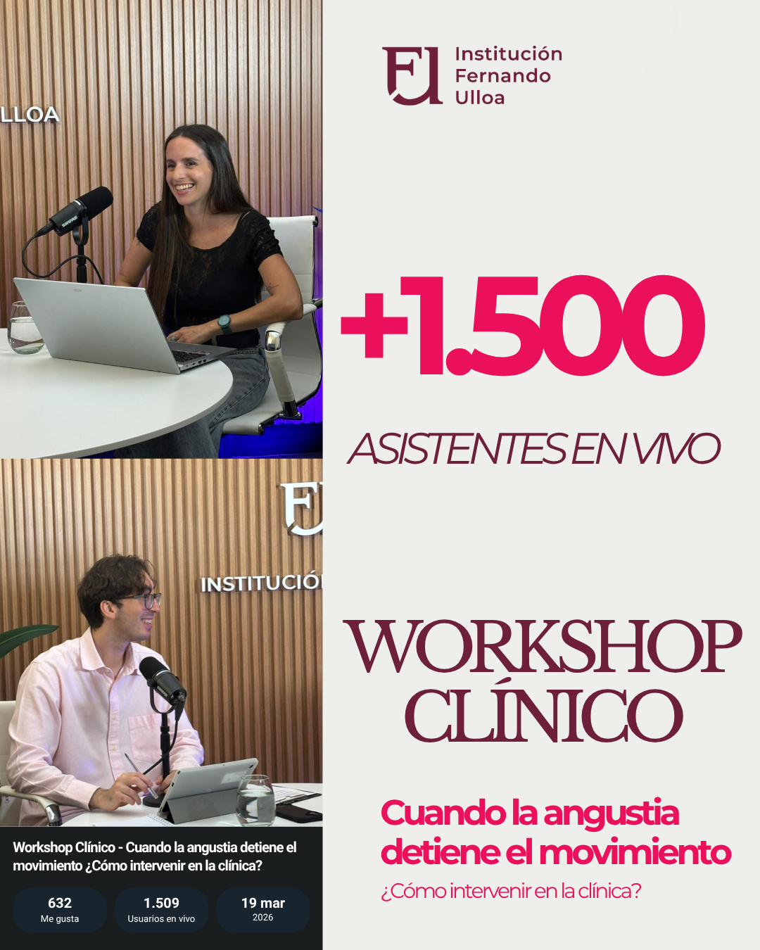 El Jueves 19 de Marzo, en el Estudio de Grabación Ulloa, se realizó en vivo por YouTube el Workshop Clínico “Cuando la angustia detiene el movimiento – Fobias e inhibiciones en la infancia ¿Cómo intervenir en la clínica?”, a cargo de la prestigiosa psicoanalista, Lic. Paula Penalva, con la participación de más de 1.500 profesionales de distintos lugares del mundo.